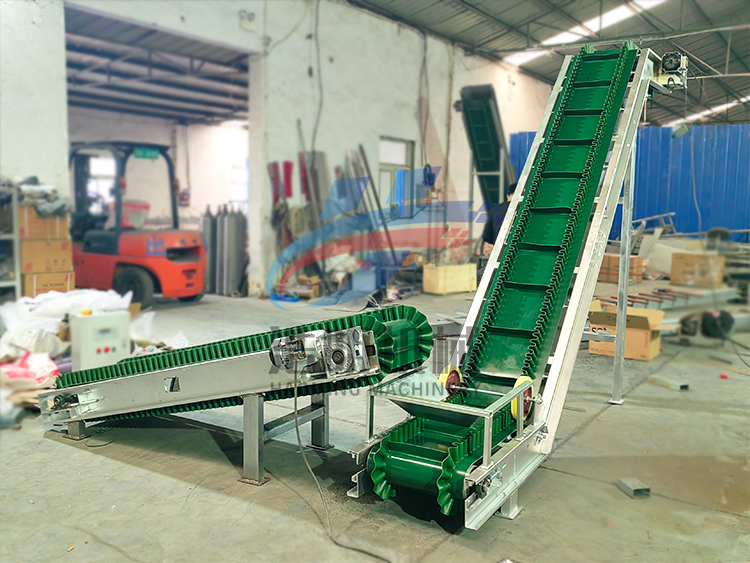 波状挡边皮带输送机可以加装进料斗,适合散料、粉料、小颗粒物料的输送、上料。