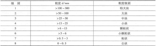 对散状物料按粒度大小进行分级的结果见表1-3。
