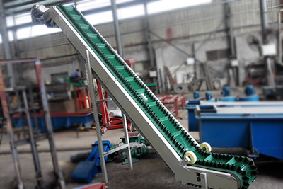 裙边格挡皮带输送机就是一种大倾角皮带输送机,输送带上面中间有隔板,两边有裙边,可以防止物料散落,相对于普通皮带输送机有着输送量大、输送角度大等特点。...